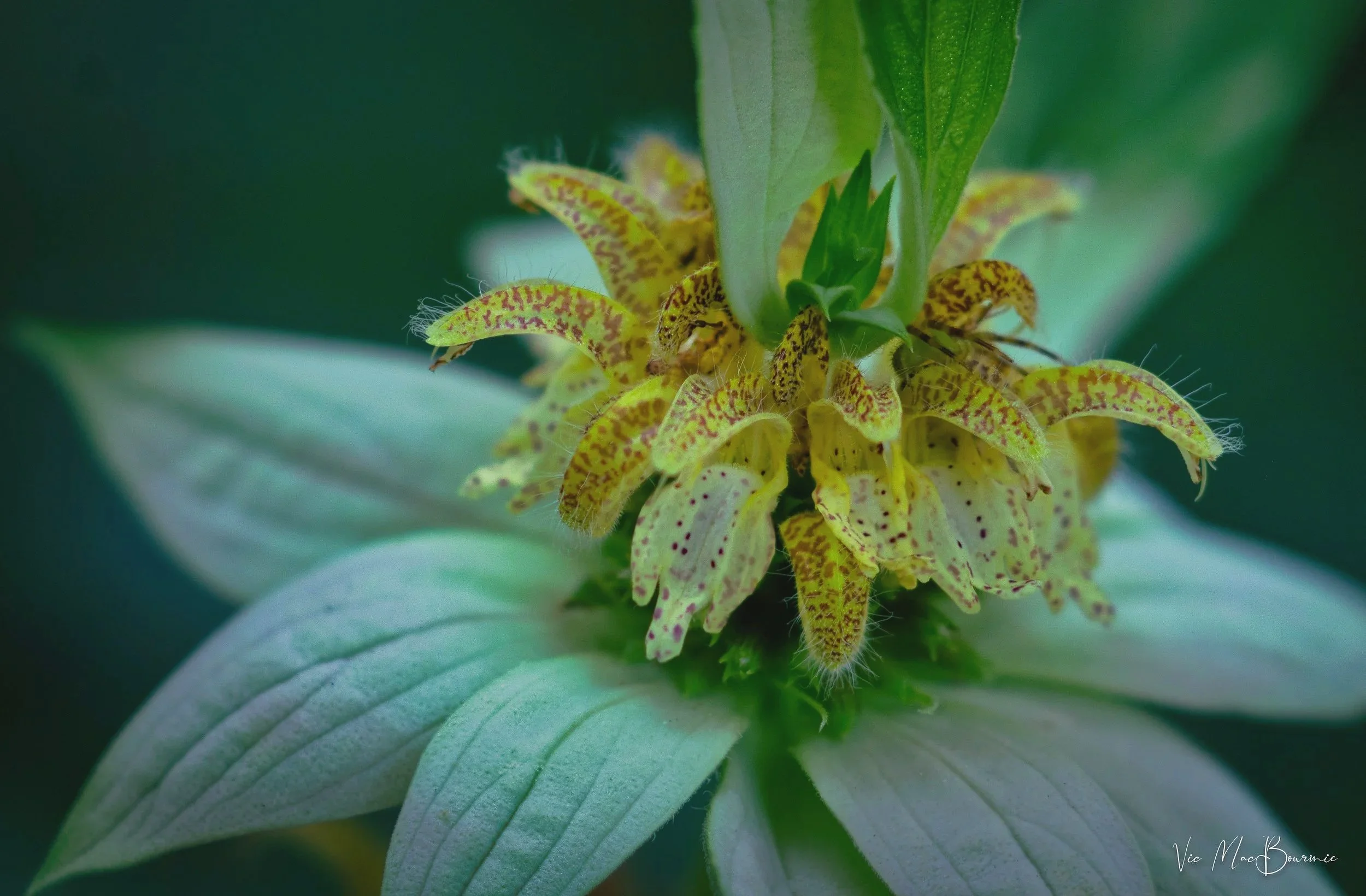 Spotted beebalm is such an unusual plant that I wanted to photograph it using a variety of approaches, showing the plant in its natural environment as well as close-up images showing its detailed unique charcteristics from the tiny hairs on its tubular spotted flowers to the subtle beauty of its pinkish-lavender bracts.